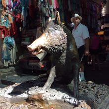 市場の周りには革製品の露天商がいっぱい。人通りも多くて、にぎやかこの上ないです。そんな中、ひときわにぎわっているのが、このイノシシの前。皆コインを落としたり、鼻をなでたりして写真を撮っています。私も鼻を撫でるところを写真に撮ってもらいました。もう一度フィレンツェを訪れることができる、というおまじないだそうです。叶えばいいな。