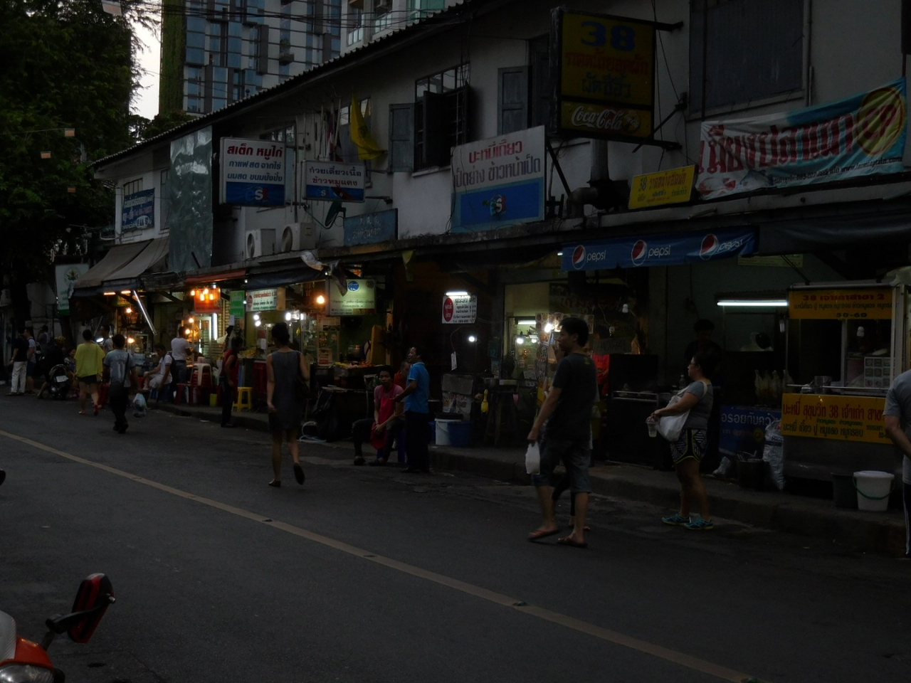 トンローの屋台街がこちらのクチコミで8月いっぱいとあったのですが、とりあえず、どうかなぁと思い、行ってみました。開いているのは道沿いの数軒のお店くらい。片側のお店はシャッターが降りてました。