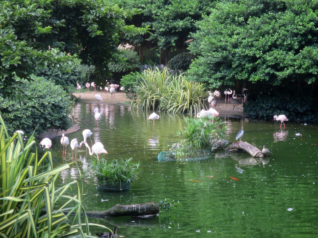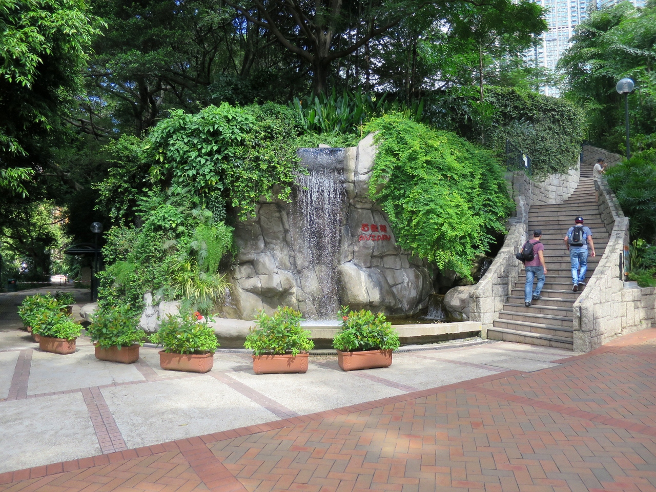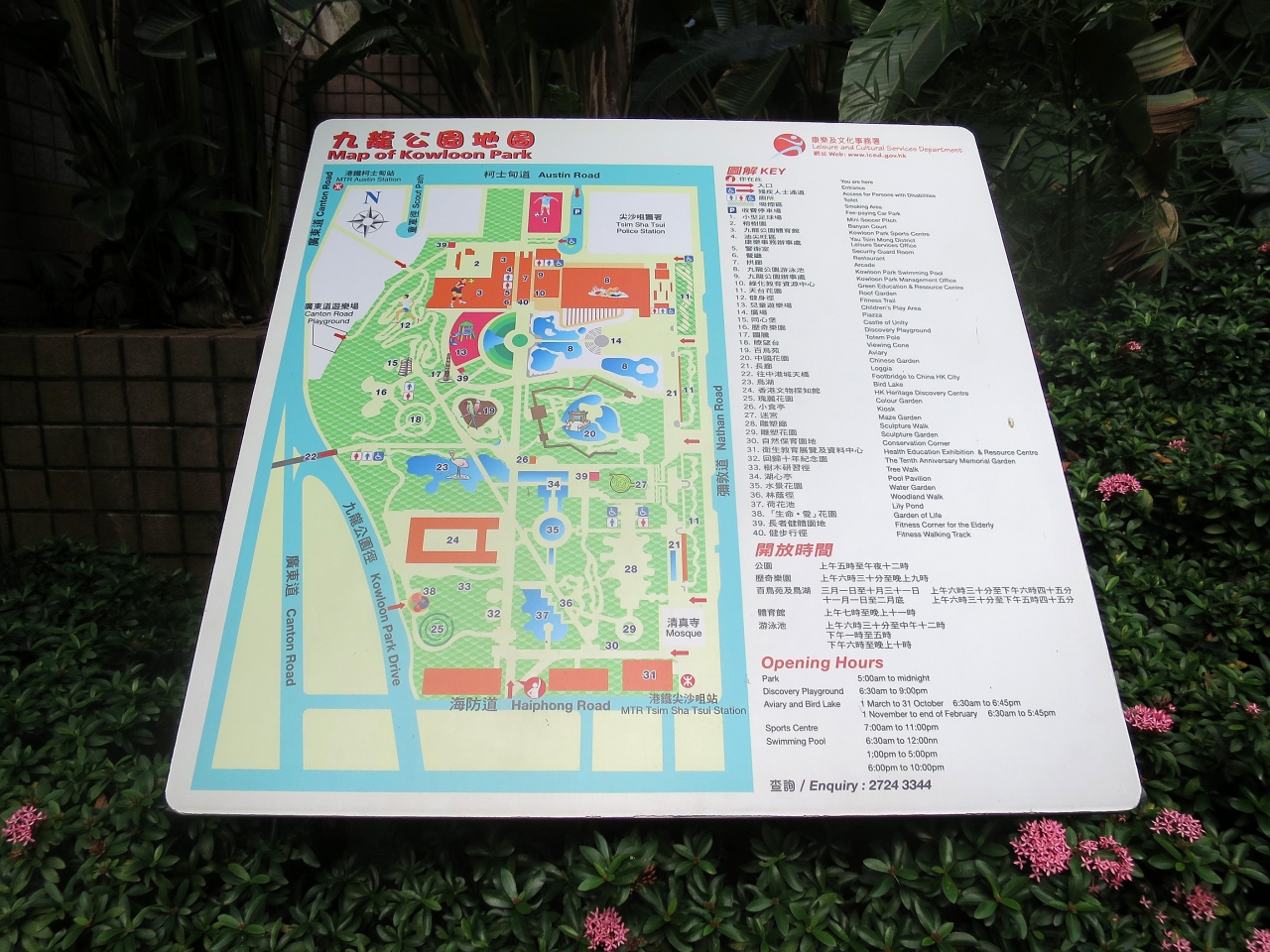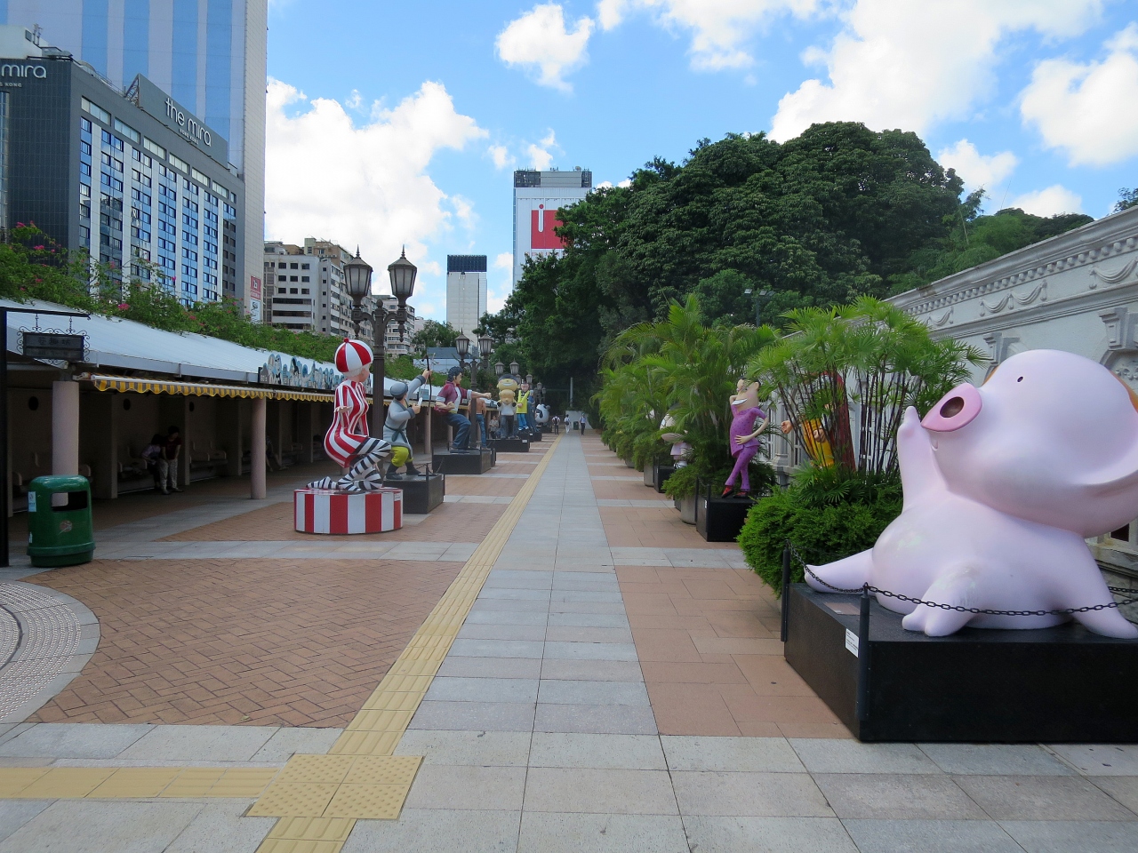 朝食後の散歩で、フともラッと寄って見ました。あくまでフラッと寄るつもりの公園が、なんとも盛り沢山の内容で、予想外に時間を使ってしまいました(笑)。緑あふれる公園内には「香港文物探知館」という施設があるのは知ってはいたのですが、それ以外にもフラミンゴなどが飼育されている池、大きな檻に何種類もの鳥が飼われている「百鳥園」、香港のコミックスターの大型フィギュアが並んでいる「香港アベニュー・オブ・コミック・スターズ」、そして大型のスイミングプールなどもありました。ここまで見て立派な西洋式公園と思ったのも束の間、園内にはやはり中国式庭園も造られていました。こうして散歩は大成功に終わりました。