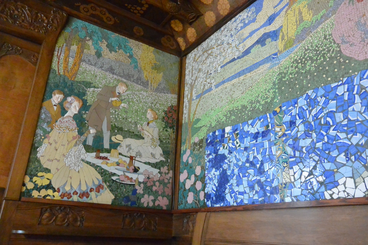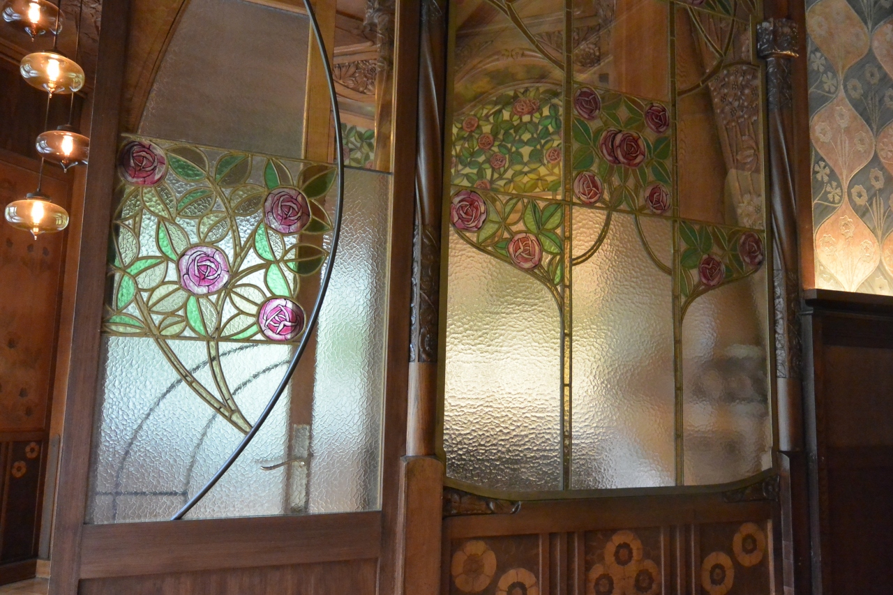 ホームページから予約をしていきました。料金は12ユーロで「express tour」とあったので何だろうと思っていたら、最初にざっと説明をして、パンフレットを渡し、後は自由に見学してくださいという形でした。この建物はモンタネ―ルの設計で、ステンドグラスやモザイク画など彼らしい美しく華やかな装飾が見どころです。カサバトリョ、カサ・アマトリエールと同じブロックにあります。
