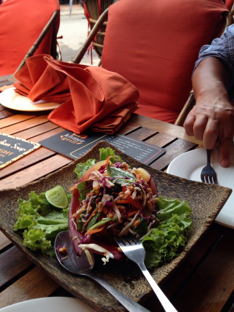 後日頂いたカンボジアン スープ(2人分15ドル)もヘルシーで美味しかったです。この時はインサイドの席でしたが、一段高くなっているので見晴らしも良く、この辺りがこの店の入りやすさかな?と感じました。