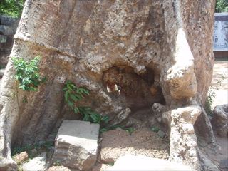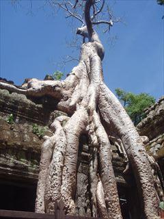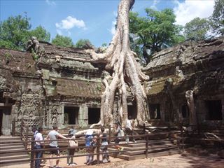 ガジュマルの木が建物の屋根をはってタコ足のように見えます。ガジュマルの種が鳥の糞により屋根に運ばれ水と土を求め根を伸ばすにも長い年月がかかっていると思うとなんだか神秘的です。手付かずの場所が多く所々崩れているところがあり進入禁止の場所があります。