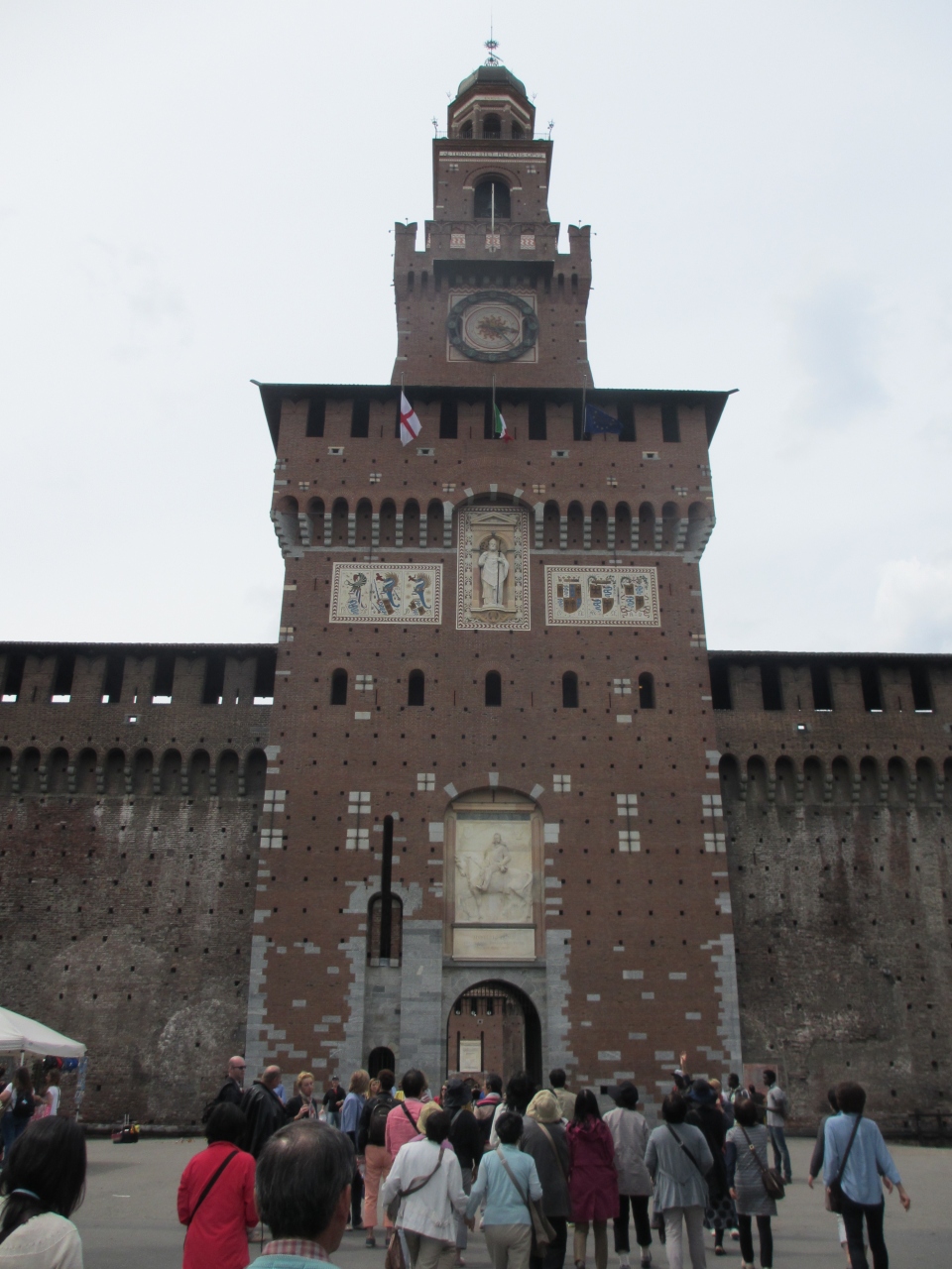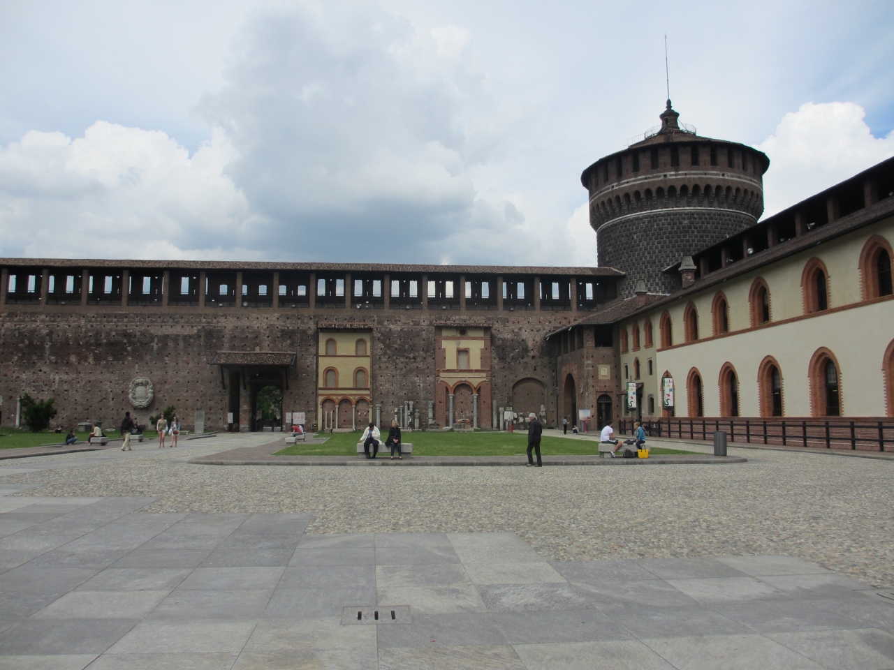 ドゥオーモから10分ほどの所にある、ミラノを統一したヴィスコンティ家が14世紀に造った塔と城壁が見られます。高さ100mほどの塔からはレンガ造りの城壁が続きます。塔の入口を抜けると広い中庭に出ます。中庭には博物館もあり、ミケランジェロのピエタが展示されています。
