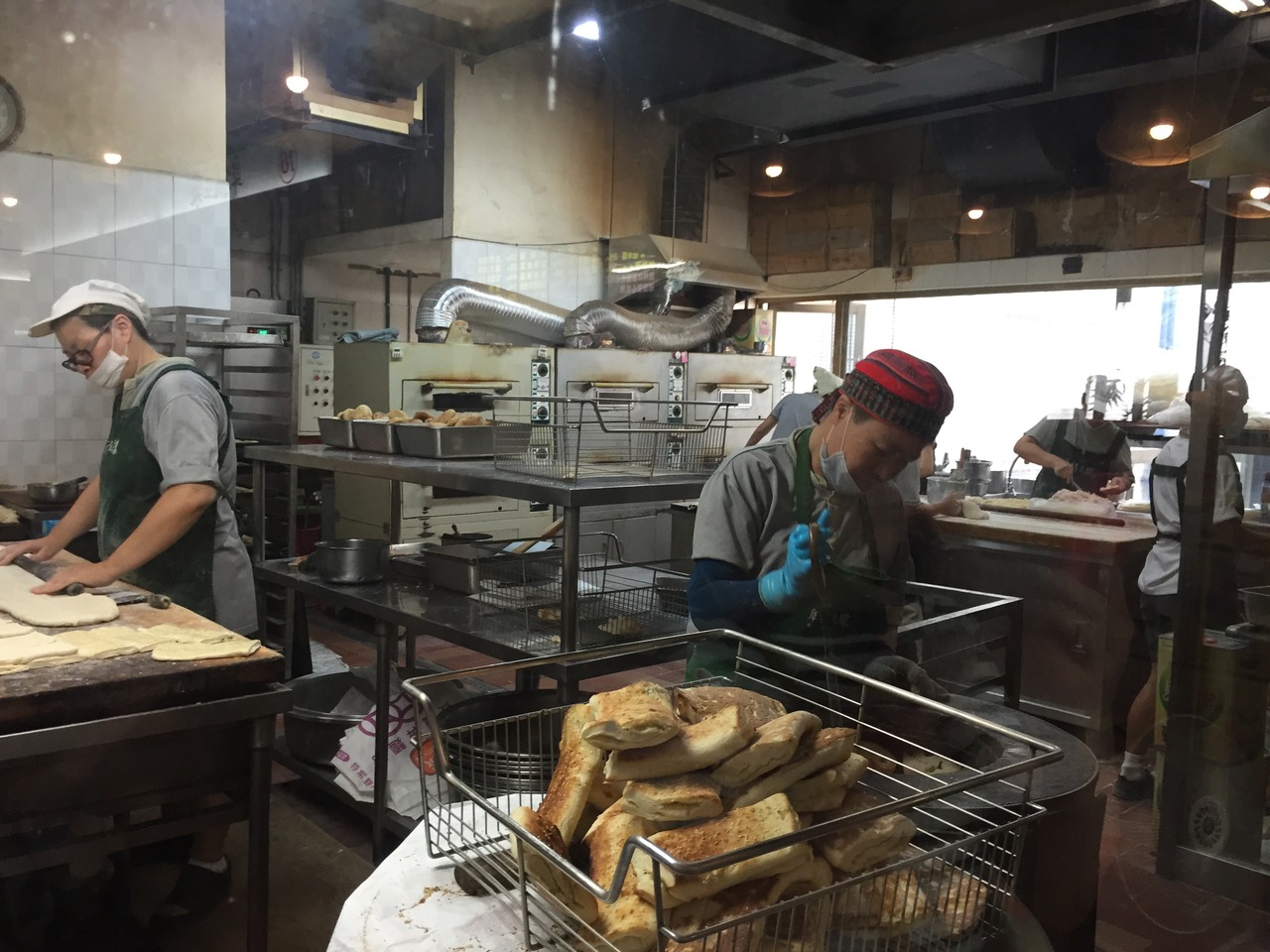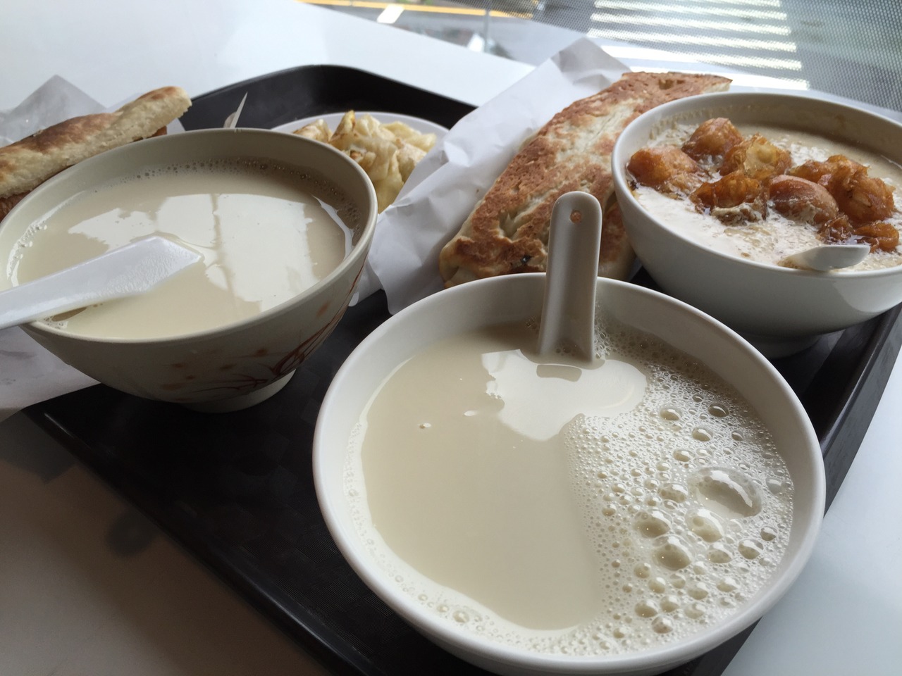 阜杭豆漿はいつも行列が凄いと聞いていましたが、運良く行列は階段下までで10分くらいで入店できました。買いたい物は紙に書いて行った方がいいとのことだったので、鹹豆漿・甜豆漿・油條・厚餅夾蛋・蛋餅と前以て記入して行きました。おかげで私が席とりをしている間に、子供達が紙をだして(一言も話さなくても大丈夫だったそうで)無事に購入することができました。豆乳類は全て想像以上に豆豆しくて、完飲することはできませんでした。厚餅は美味しかったです。