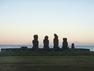 日の出に見た 5体のモアイ像
