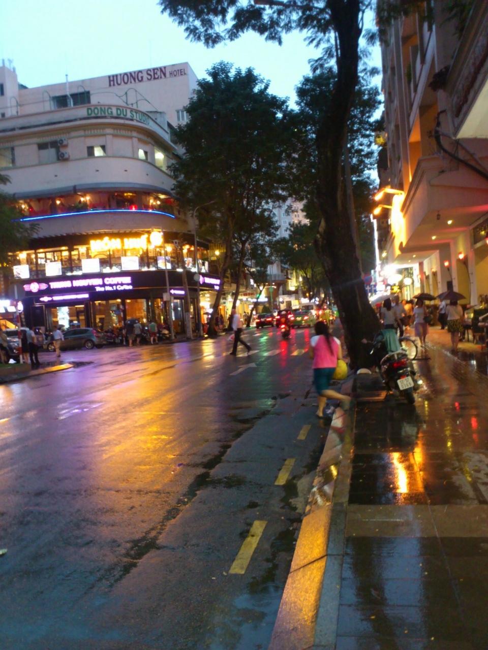 ホーチミンの一番賑やかな通りではないでしようか。Continantal Hotelというドンコイ通りにある歴史あるホテルに宿泊したので、夜も昼もどこかに行くのに必ずこの通りを行き来しました。メイン通りは地元の方向きというよりも観光客向きの少し高級でおしゃれなお店が並んでいます。日本の観光客がたくさんいます。