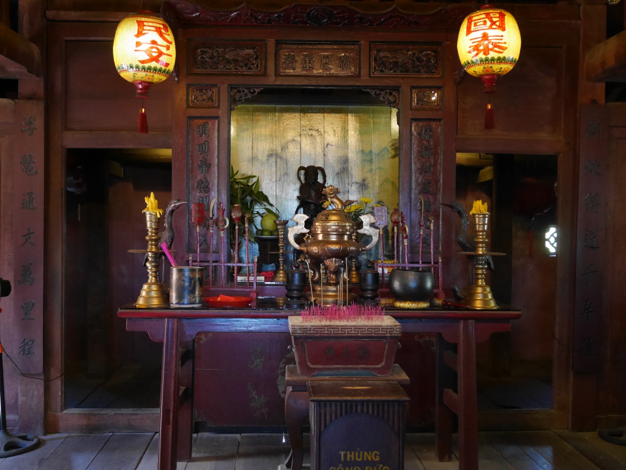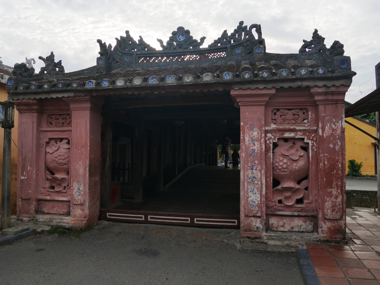 有名な日本橋。チケットを買って見学しました。昼間は橋の真ん中にある扉が開かれています。犬とサルの像がありました。夜は美しくライトアップされていますので昼と夜に行くと良いと思います。ここをスタート地点にホイアンの歴史地区を回るのがわかりやすいかもしれません。