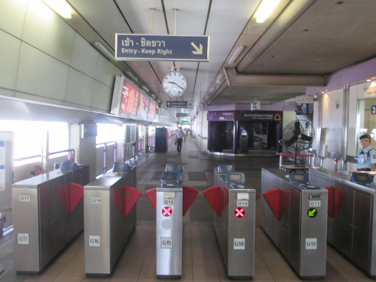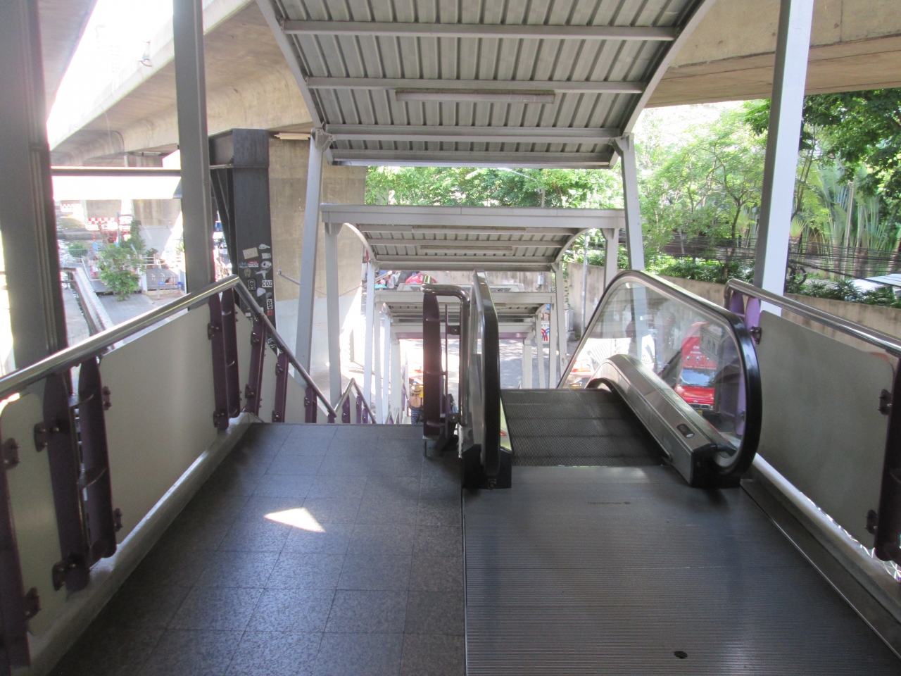 駅ホームが単線ということもあり、構内全体が細長いです。他のBTSの駅とは違い、エスカレーターに上り、下りが両方なく、通路も狭いです。サトーン船着場近くの改札出口にエスカレータはなく階段のみになっています。
