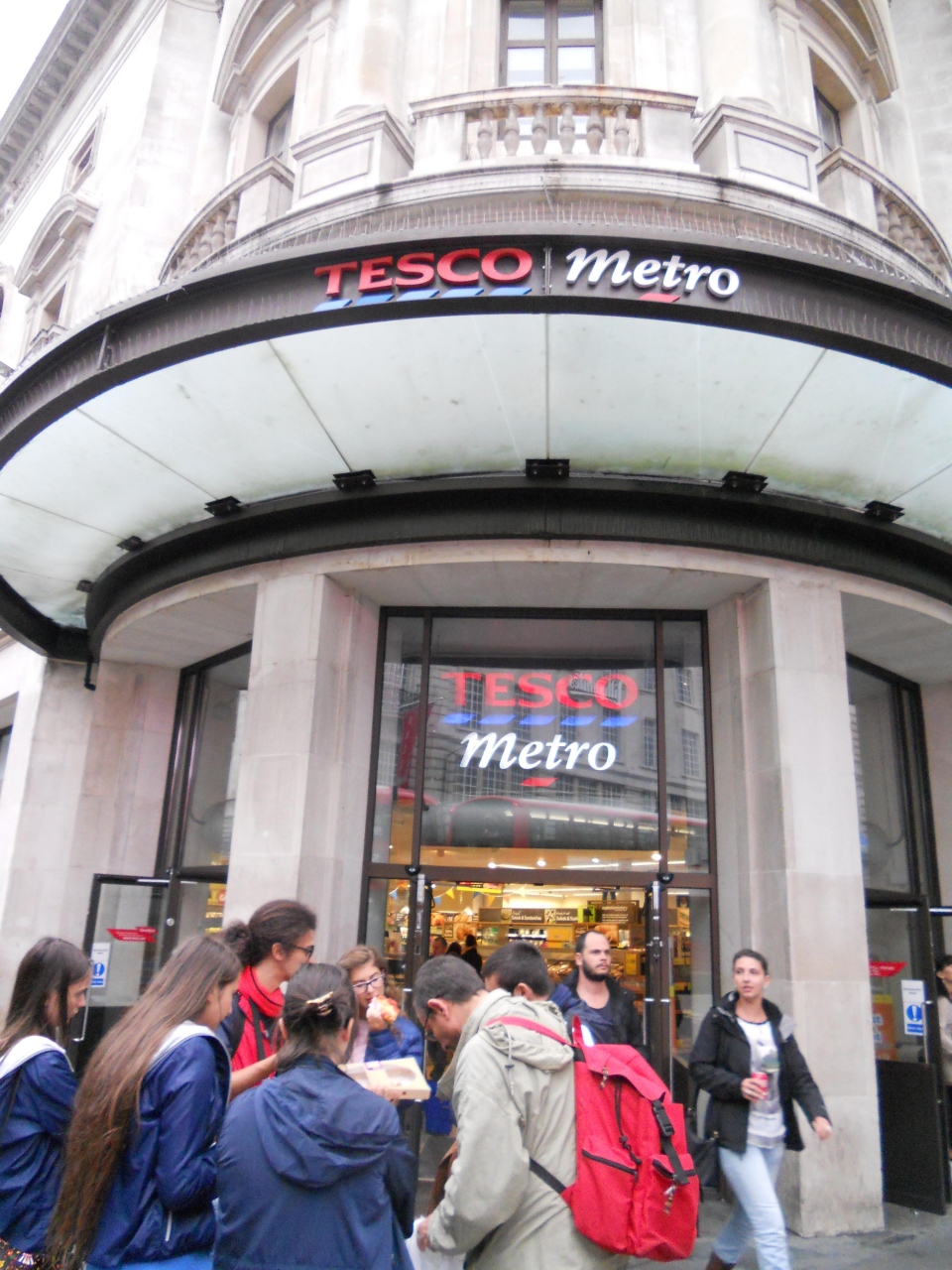 ロンドンではあちらこちらにあるチェーン店のスーパーですが、こちらはとても大きくて、場所が一等地の割にはお値段もリーズナブルで店舗も大きいのでばらまき用のお土産や飲み物もたくさん購入してしまいました。他にもスーパーはありますが、テスコが一番お安いと思います(同じ商品で比較しました)。