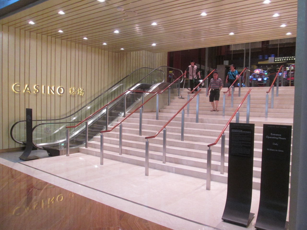 マリーナベイサンズのショッピングセンター内にあるカジノです。現在、日本では体験できない娯楽施設です。シンガポール人は入場料として100Sドルを支払うそうですが、日本人などの観光客はパスポートを提示すると無料で入れます。
