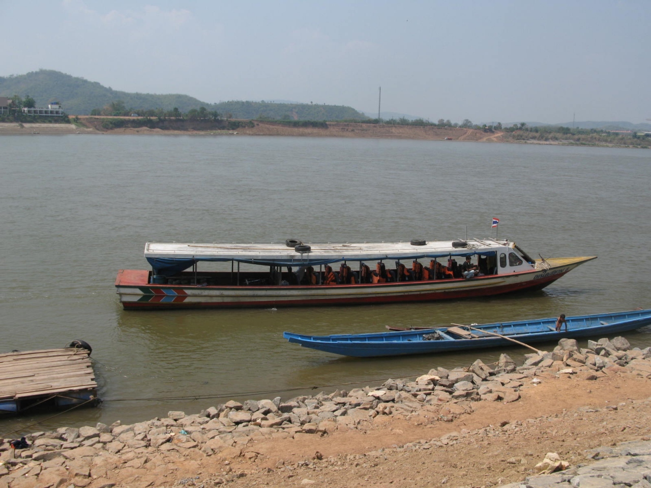 メコン川の対岸には、船で5分程度で渡れます。