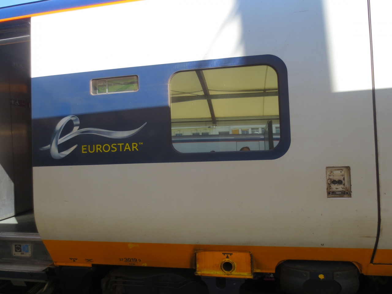 電車で国境を渡るのは2度目。10年以上前にアメリカ→カナダをやった以来でした。米加は、国境の駅で電車を止めて、国境警備の人が乗客一人ひとりのパスポートを見に来るのですが、イギリス→パリの電車は、電車に乗る前に出国ゲートがありました。