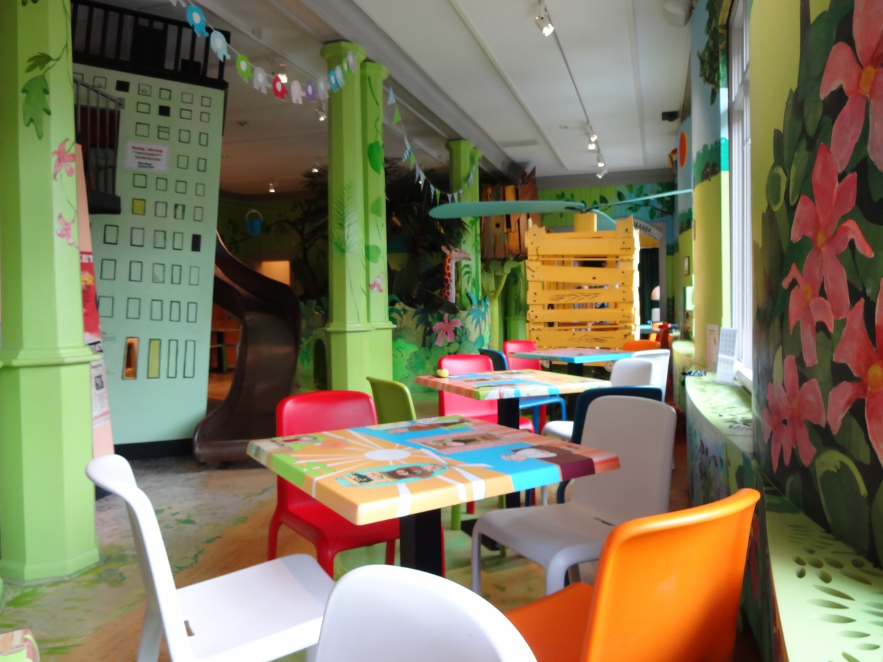 カフェ、ブティック、シアター、遊ぶ場所も本を読める場所もあり、