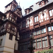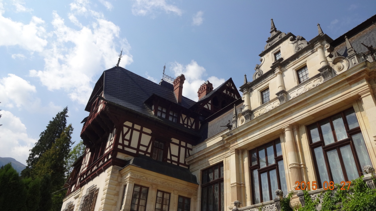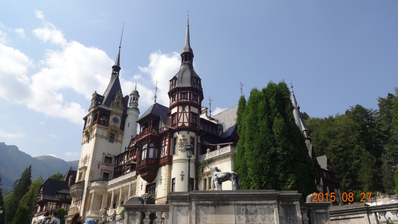 広大な城の全景は、ペレシュ城からシナイアの僧院に向かう山道の途中に撮影スポットがあります!