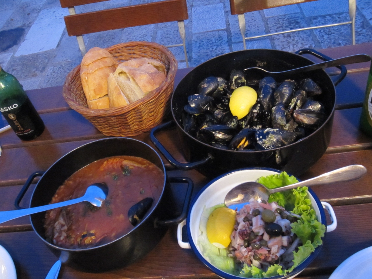 ビール2本、タコのマリネ、シーフードリゾット、ムール貝のワイン蒸、最後にホワイトコーヒー。