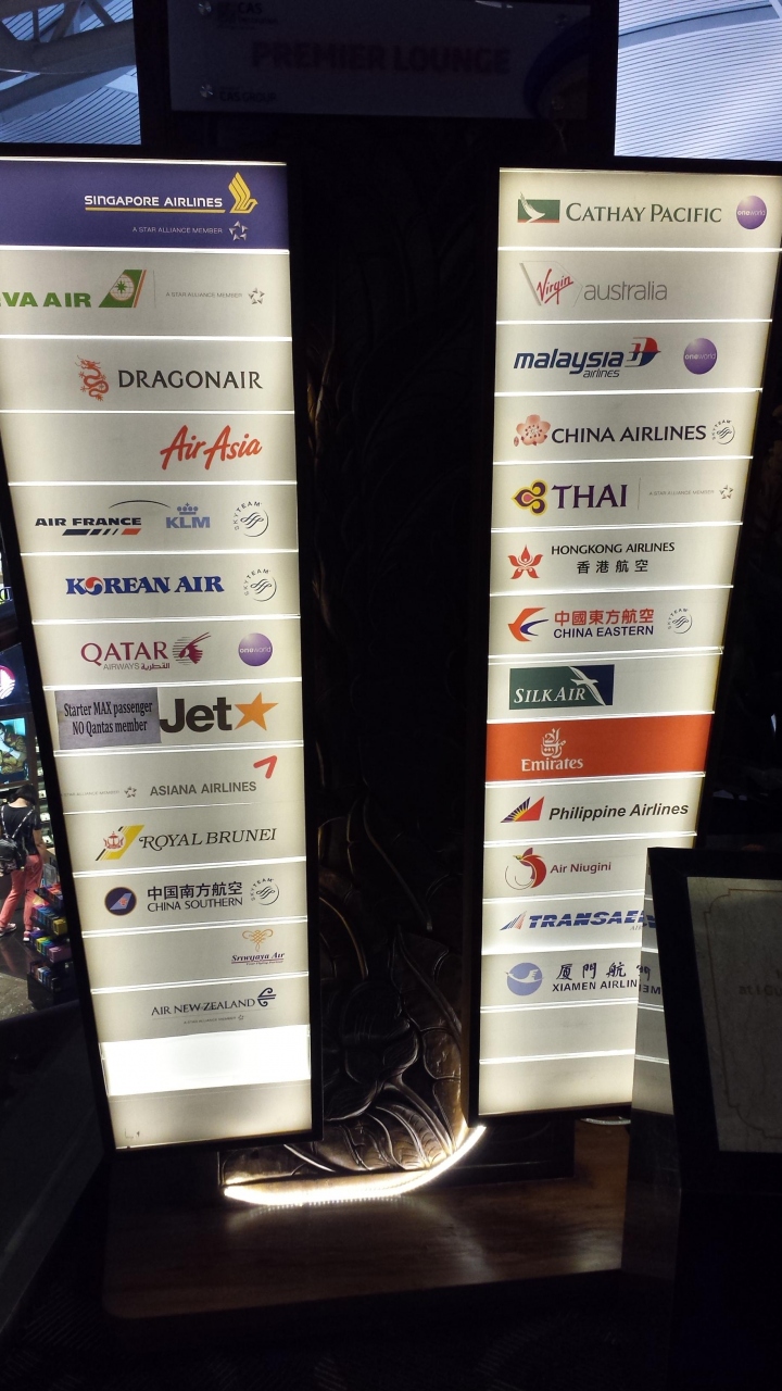 ラウンジを利用する人への情報です。基本2カ所あります。ガルーダのラウンジと多数の航空会社のプレミアムラウンジです。なんとなくガルーダの方がお膝元ということもあり豪華そうですが、逆です。プレミアムラウンジの方が落ち着けるし、飲み物、食べ物もよかったです。表示にはないですが、ダイナースで入れます。しかし他の空港と違って出国審査後にハードロックカフェやスマホ等の充電無料のカフェがありますのでラウンジの必要性は低いですね。