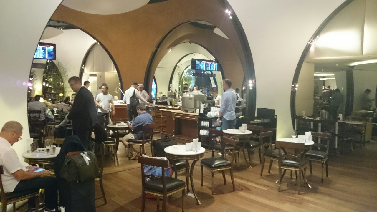 噂には聞いてたのですが、自分が体験できる時が訪れました。他の中東系のラウンジ経験の方たちからすると、騒ぐ程ではないのかも知れませんが・・・スタアラ一本の私の中では今までで一番印象深かったです。ホテルの朝食のようにたくさんのブースがあって満足でした。ヨーロッパやアメリカのラウンジと比較したら、本当に驚くラウンジだと思います。