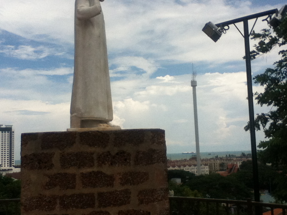 マラッカ観光のスタート地点であるオランダ広場から、スタダイス前を通り緩やかな小路を上がっていくと、小高いセント・ポールの丘に出る。そこにこちらのフランシスコザビエル像が立っている。その奥にはザビエルゆかりの教会跡が残っている。ザビエルは、日本をはじめアジアで布教活動を行った。ザビエル像は、建設時に風によって右手が切り落とされそのままの状態であるが、比較的綺麗な白色で土台を含めるとかなり高い。ザビエル像の横に立つと、マラッカタワーや旧市街、そしてその遥か先にはマラッカ海峡が見える。近くの教会跡とともに訪問することをお勧めする。