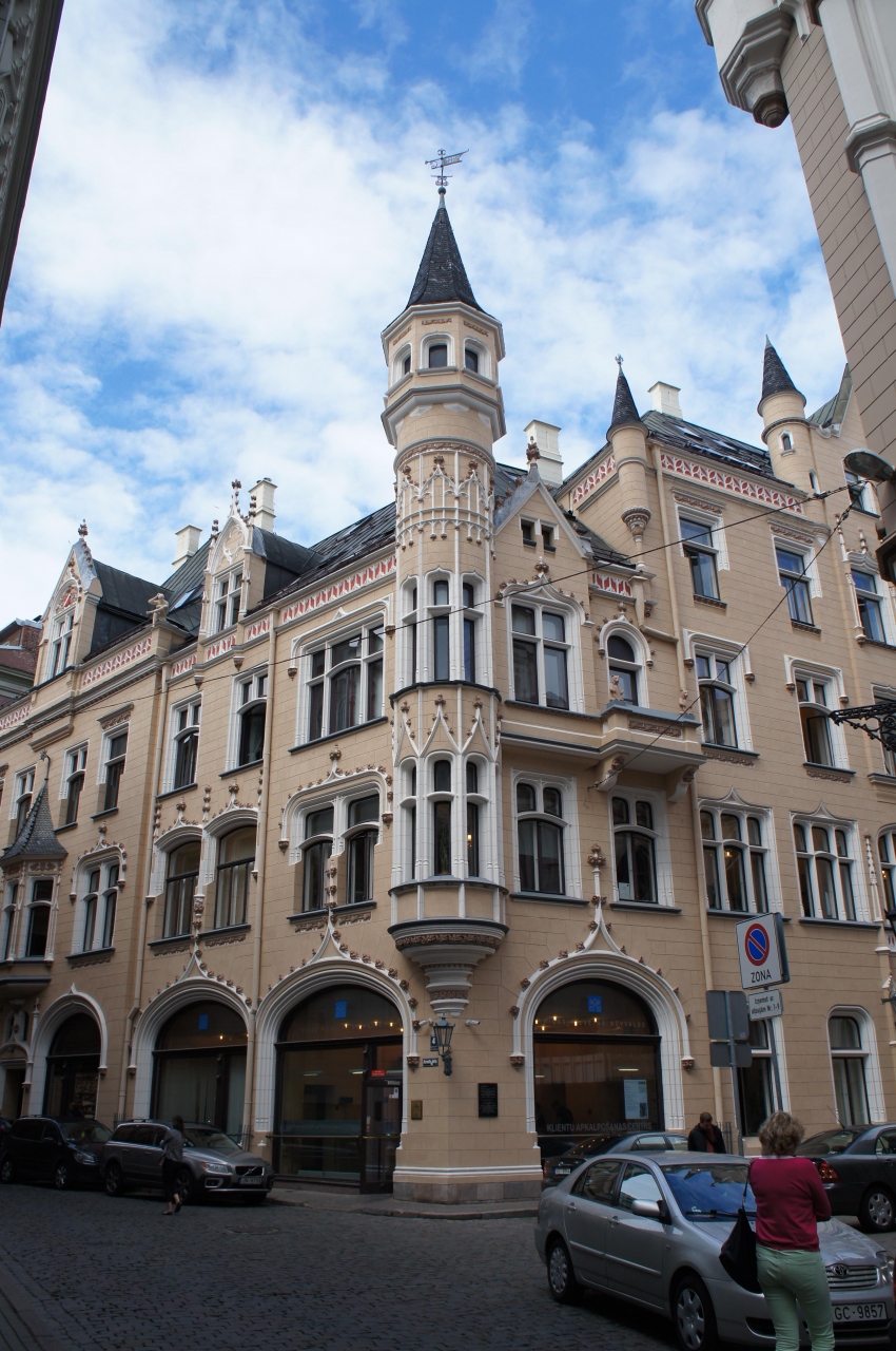 小ギルドコンサートホールの脇を入った小さな通りです。Amatuとは「職人」の意味。大聖堂に向かって右手に、ちょっとガウディー建築に似た雰囲気の楽しく装飾された建物があります。屋根の上を見上げてみてください。本を読んでいる人の像がありますよ。
