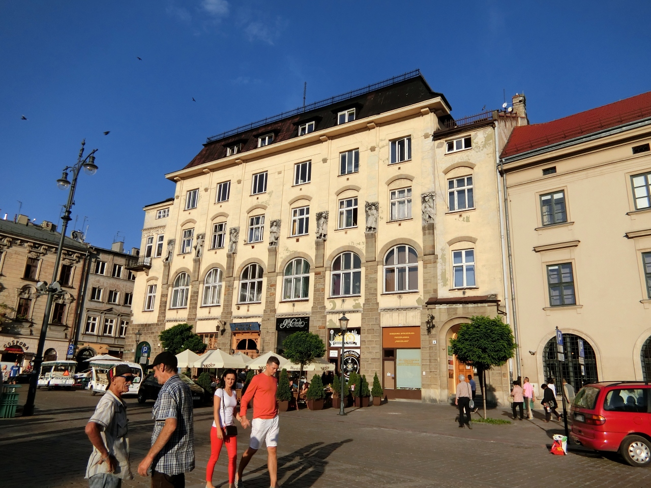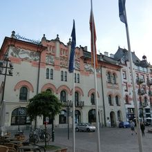 中央広場に近い広場です。周囲の建物は壁に彫像を配したものや、レリーフを施した物などがあり美しい景色を形造っています。