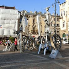 広場は色々なイベントが催されているようで、訪れた時は金属性(鉄、アルミ?)の板でつくられた大きな人形が展示されていました。