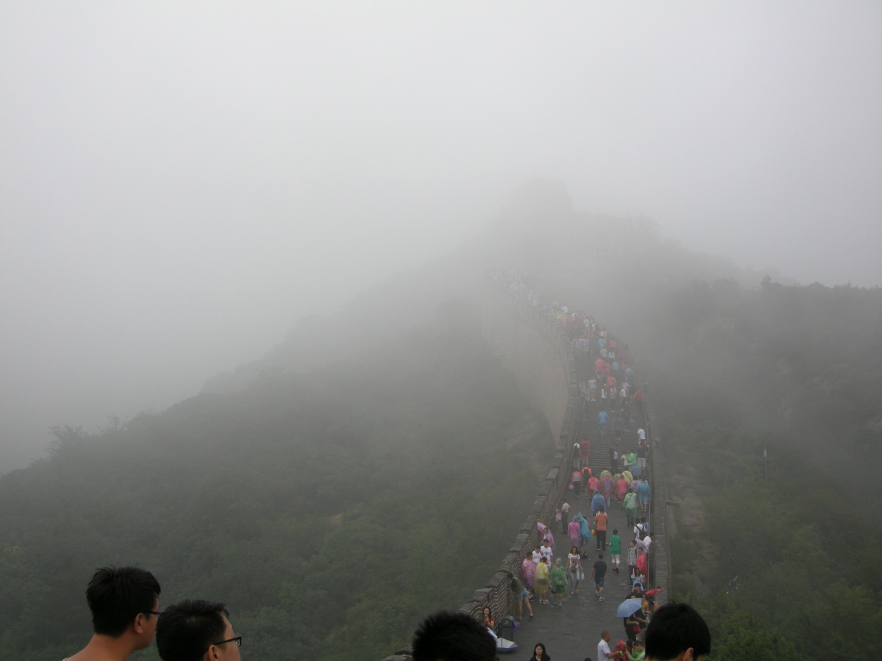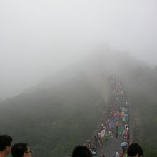 入口でセキュリティチェックをしてから長城に登りますが、さいしょの部分で左右に分かれることになります。左側は坂がやや急で登りにくいそうです。私が行った時は天気が悪く、危険だと判断されたためか、通行禁止になっていました。右側の道もかなり傾斜の強い所もありますが、まぁ楽しく登れるくらいです。