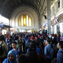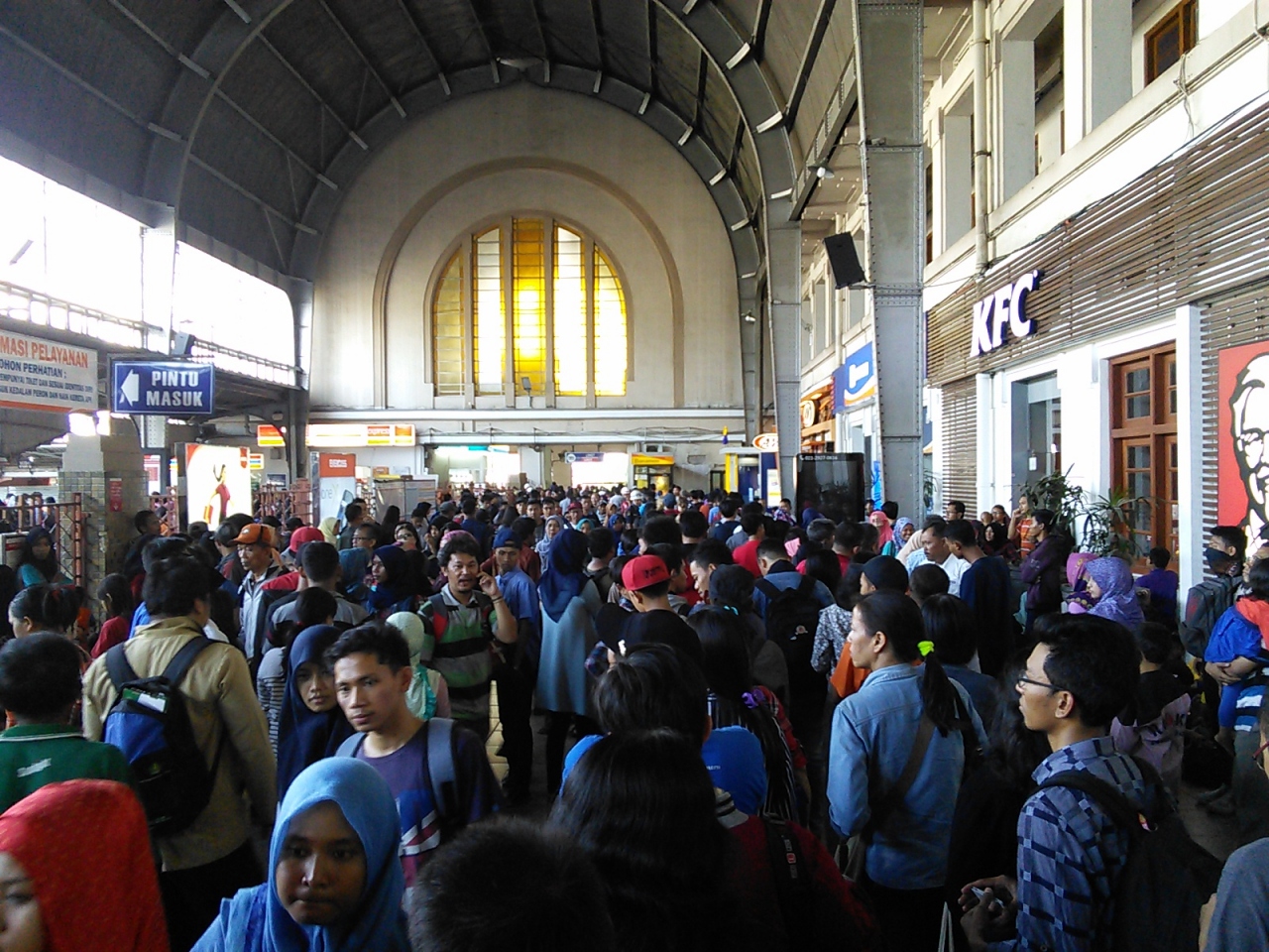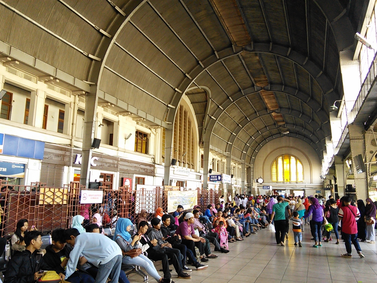 オランダ植民地時代に造られた美しいコロニアル調の美しい駅舎です。ゆっくりとそのノスタルジックな雰囲気に浸りたかったのですがそれどころかではありませんでした。勝手に風情ある地区の田舎駅を想像していたのですか大都市ジャカルタのターミナル駅であることを思い知らされました。この日はたまたま日曜日で駅構内は人で溢れていました。おそらくほとんとがコタ地区を訪れた観光客だと思います。ガンビル駅までの帰りのキップを買うのにも超超長蛇の列。参りました。週末に利用される方は覚悟しておいた方がいいです。