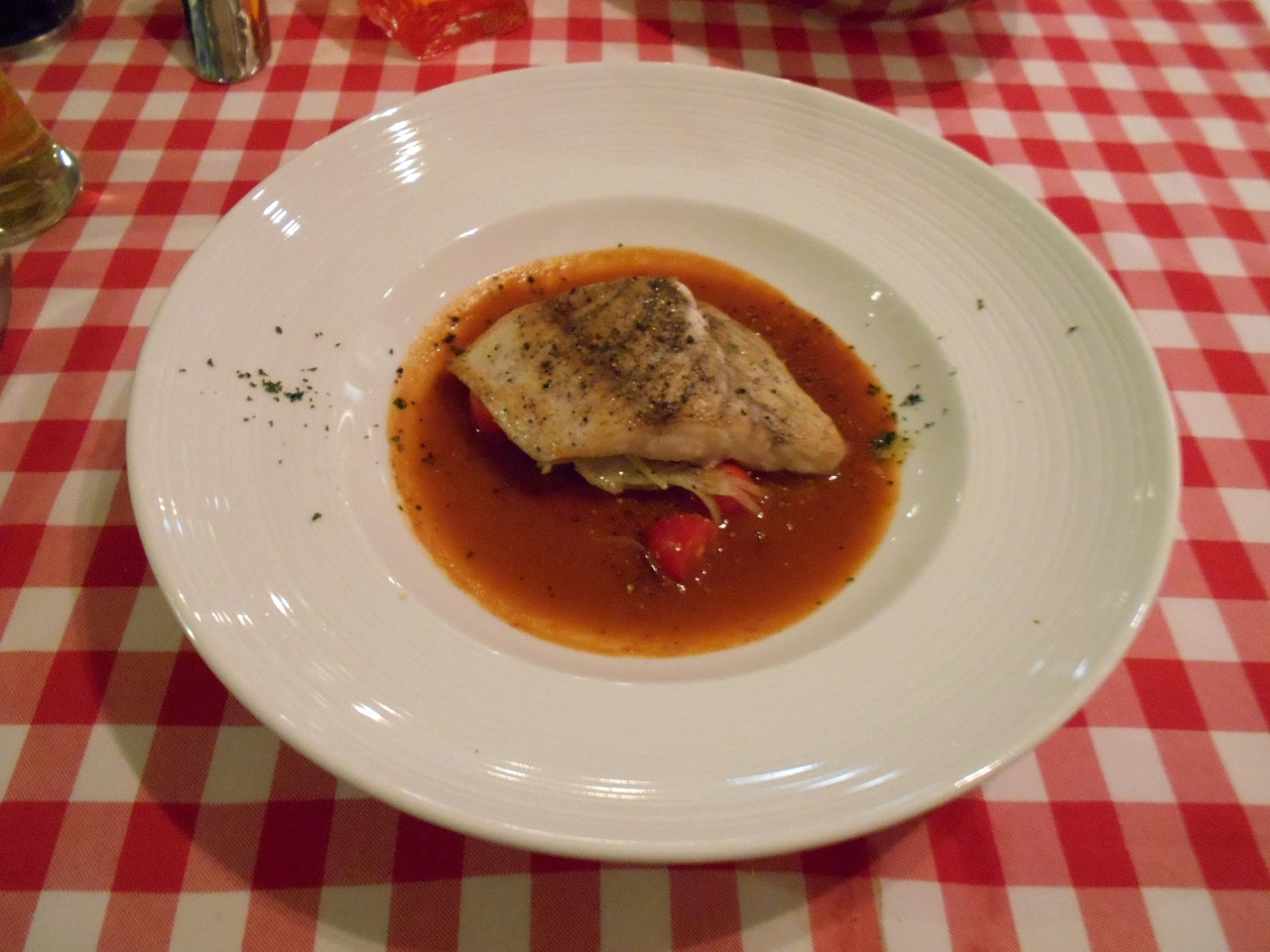 チャオプラヤ川沿いに建つ格式高いホテル「ロイヤルオーキッド・シェラトン・ホテル&タワーズ」の1階(日本だと2階に相当)にあるイタリアンレストランです。屋外でも食事ができますが、今回も屋内のテーブル席へ着きます。ディナー時には各テーブルにキャンドルが灯され、足元から天井までの大きな窓からはチャオプラヤ川の雰囲気を感じられるフルサービスのリストランテではあるものの、そこはイタリアン、ギンガムチェックのテーブルクロスや気さくなスタッフの存在もあって、気軽に食事が楽しめる雰囲気です。さて今回もディナーに訪れました。10日前に引き続いての利用で、スタッフからは満面の笑みで「ウェルカムバック!」。ここではアラカルト以外にビュッフェを選ぶこともできます。ビュッフェ用メイン料理から一品選び、前菜・デザート類はビュッフェ台からというシステムです。料理は食材の良さを生かしたナポリっぽい素朴な味付けです。これで料金は750THB++、SPG会員は15%割引にもなりますから、ホテルから出たくない時などにも手軽に利用できます。これで食後のコーヒーまで付いていたならば、費用対効果はもっと高くなるのですが…。