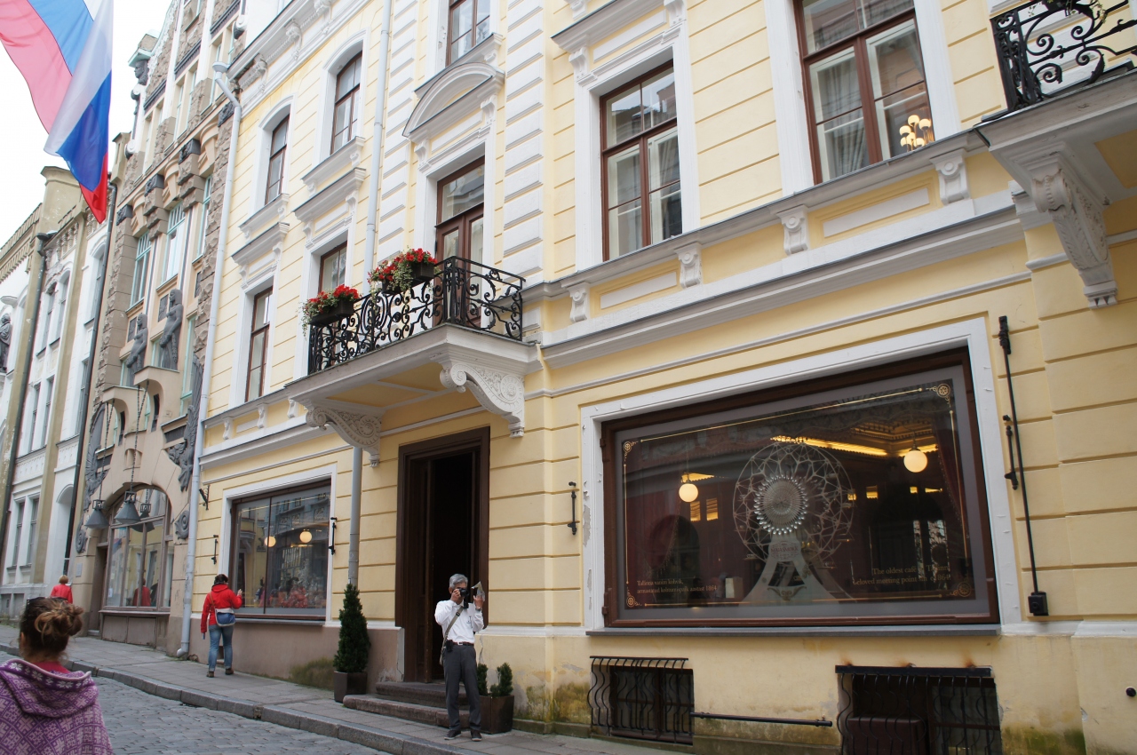 三人姉妹、ブラックヘッドの会館、大ギルドの会館、老舗菓子店兼カフェのマイアスモック等、歴史ある建物やホテル、レストラン、お店が建ち並ぶ綺麗な通りです。人通りも多く賑やかでした。かつても商人たちが行き交う賑やかな通りだったそうです。