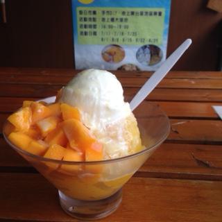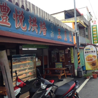 ほとんど何もないような駅周辺ですが、駅を出て直進、右手にある「全美行」を通り過ぎ、次の通り「中山路」を右に曲がった左手先に可愛らしい喫茶店「曬穀場手作坊」がありました。池上米を使ったパンも売っています。もう少し歩いた道路反対側には、アイスクリーム屋さんの「三豆飲」。季節限定のマンゴーシャーベットを注文。季節ごとに限定フルーツシャーベットがあるようです。