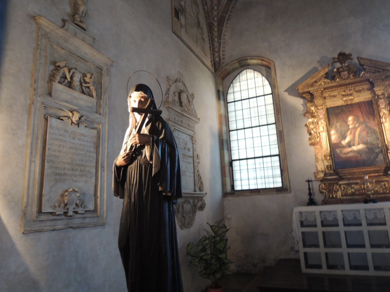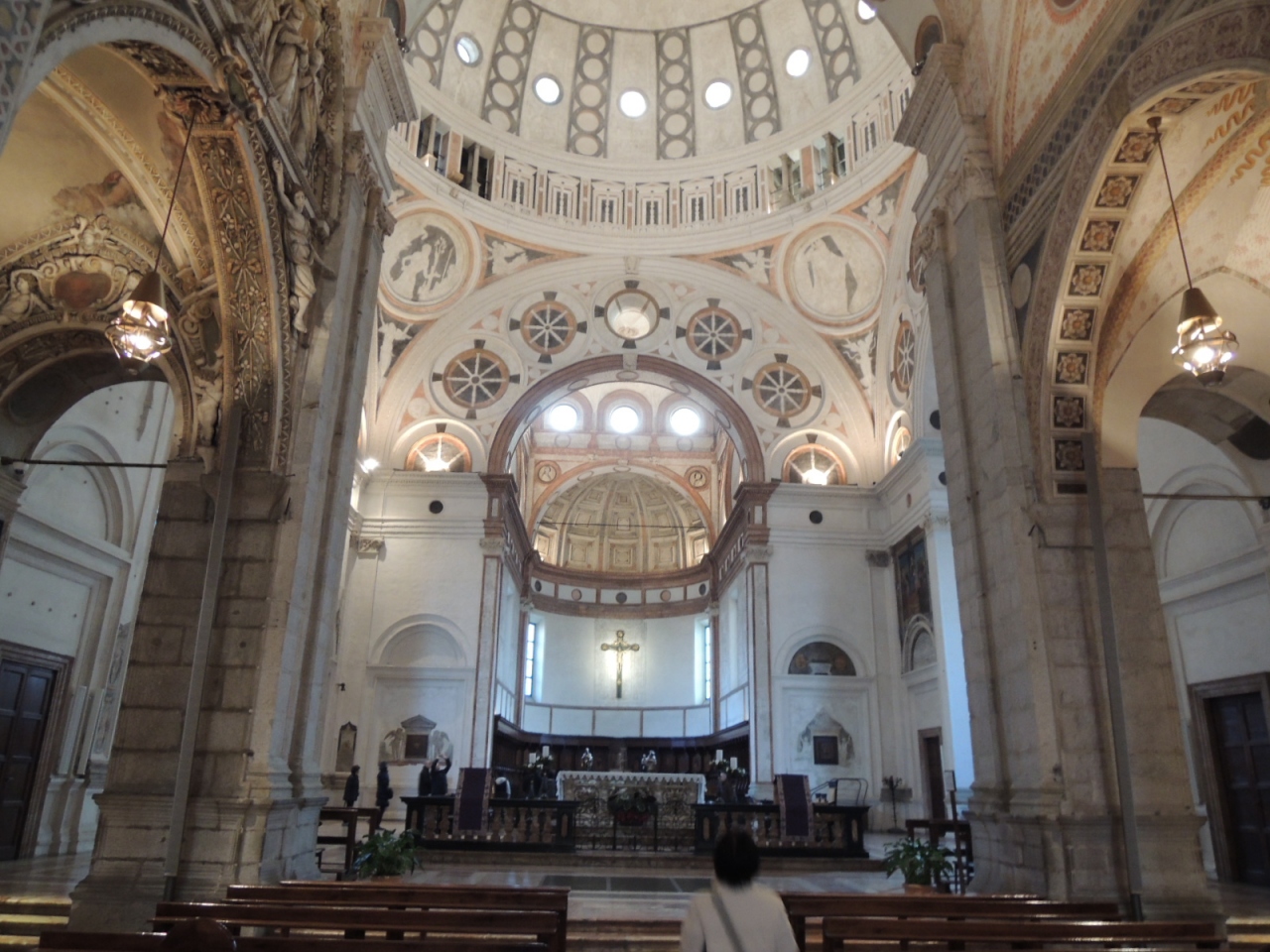 サンタ・マリア・デッレ・グラツィエ教会は「最後の晩餐」で有名です。ツアーで来る観光客は修道院食堂での一回25人15分間の見学が終わるとあたふたと帰ってしまいますが、時間があれば教会にも行かれることをお勧めします。ミラノではルネッサンス期最大の15世紀の建築物で、内部は優しい感じのする教会です。小さな礼拝堂が並んでおり、天井部分の装飾に繊細さが伺われました。 最後の晩餐の予約時間までの短い間にのぞけますよ。
