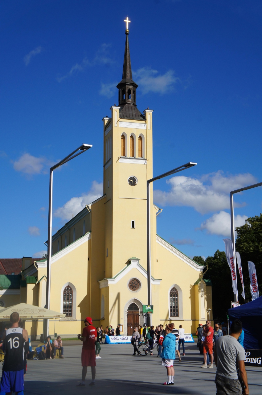 街の南、城壁の外にある広く新しい広場です。広場の東には鮮やかな黄色の聖ヨハネ教会があり、西には独立戦争戦勝記念碑が建っています。ちょうど市民のイベントが開催されていて、バスケットの試合が行われたり、広場はとても賑やかでした。この近くに日本大使館がありました。