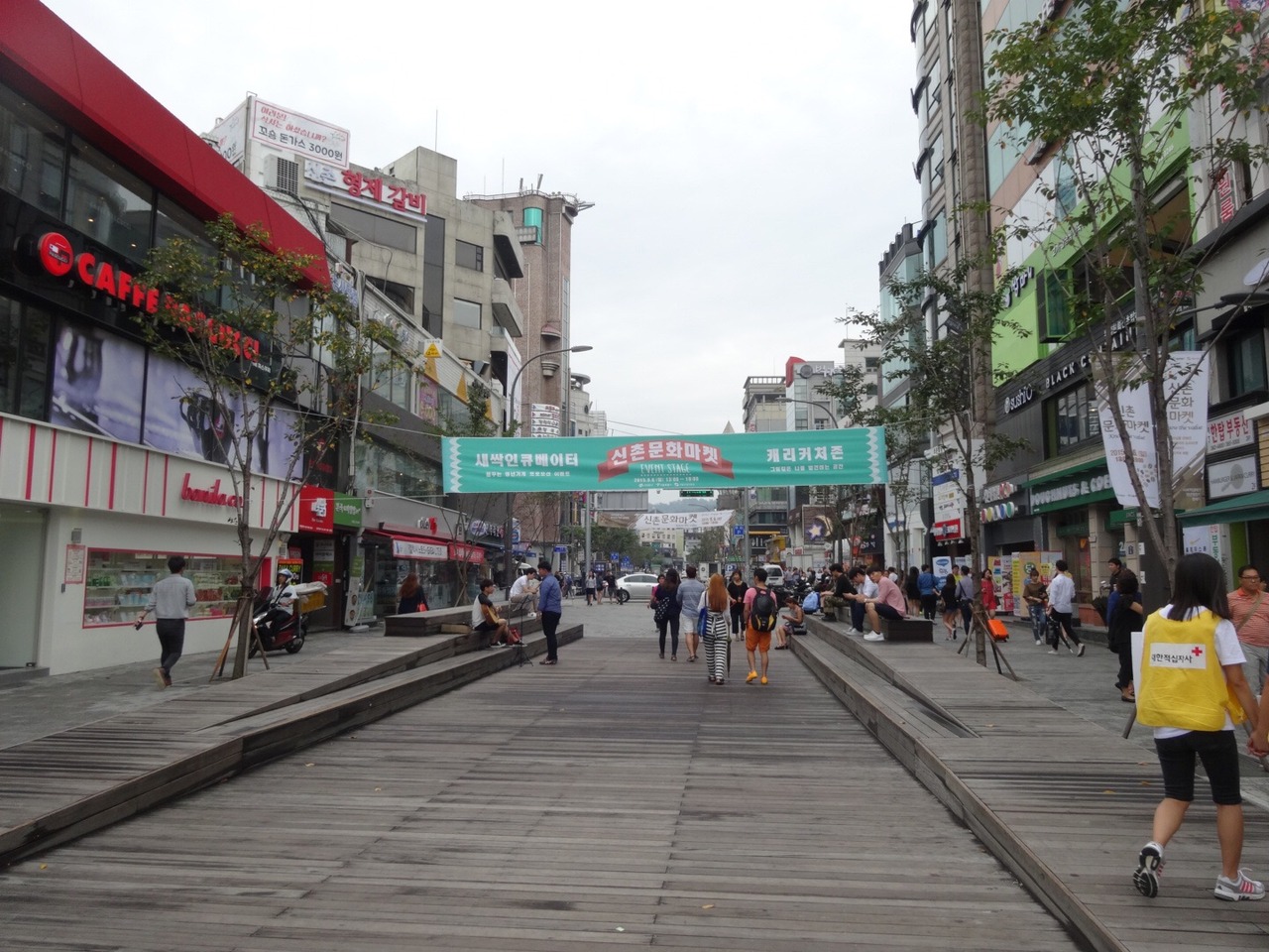 梨大駅で降りて、ぶらぶら買い物しながら歩いてると新村にも行けました。