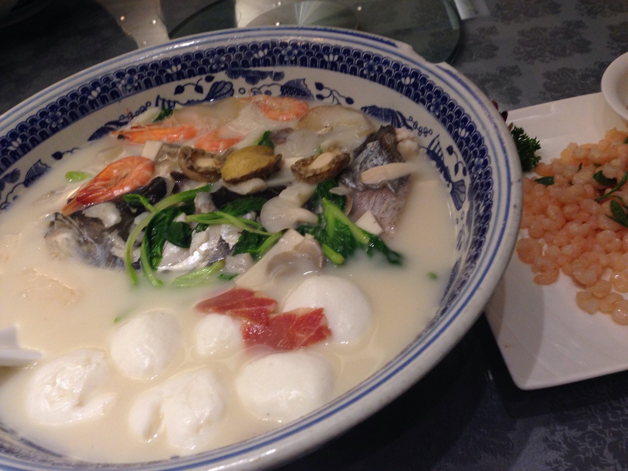 植物園の奥にあるレストランです。八宝??王というスープが美味しいです!魚のスープなのですが、魚の他にもいろんな具が入っていて、本当に美味しかったです(魚自体はやっぱり少し臭みがあったかな。でもスープは絶品!)。みんなこれを頼んでいました。私たちは二人でちょっと大きいな…と思ってたのですが、美味しくてペロリとたべてしまいました。あとは海老もたのんだけど、これは他のお店で食べたやつの方が美味しかったかな。