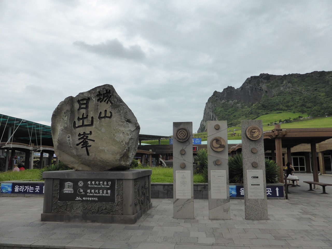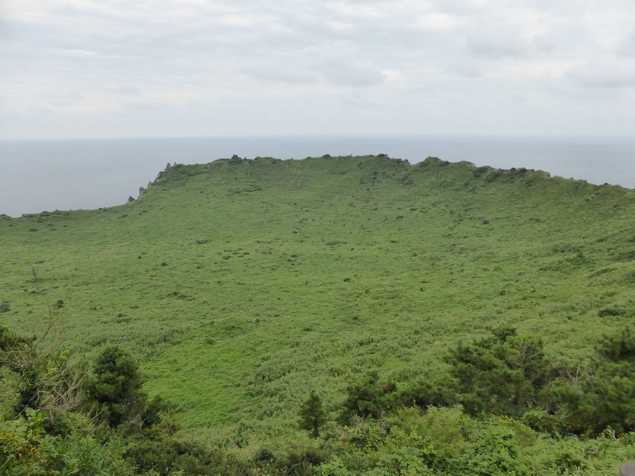 入場口から頂上まで徒歩で20~30分、往復1時間あれば充分。石畳の登山道と階段を上って行きます。上っている間はちょっときつく汗もかきますが、頂上に着くと直径600mの火口と大海原、城山港と城山村、様々な景観が望めるのでそれまでの疲れが一気に吹き飛びます。頂上は風も強く汗で濡れたTシャツが冷たく感じました。済州島で世界遺産登山ができるとは思ってもいなかったのでちょっと感動しました。