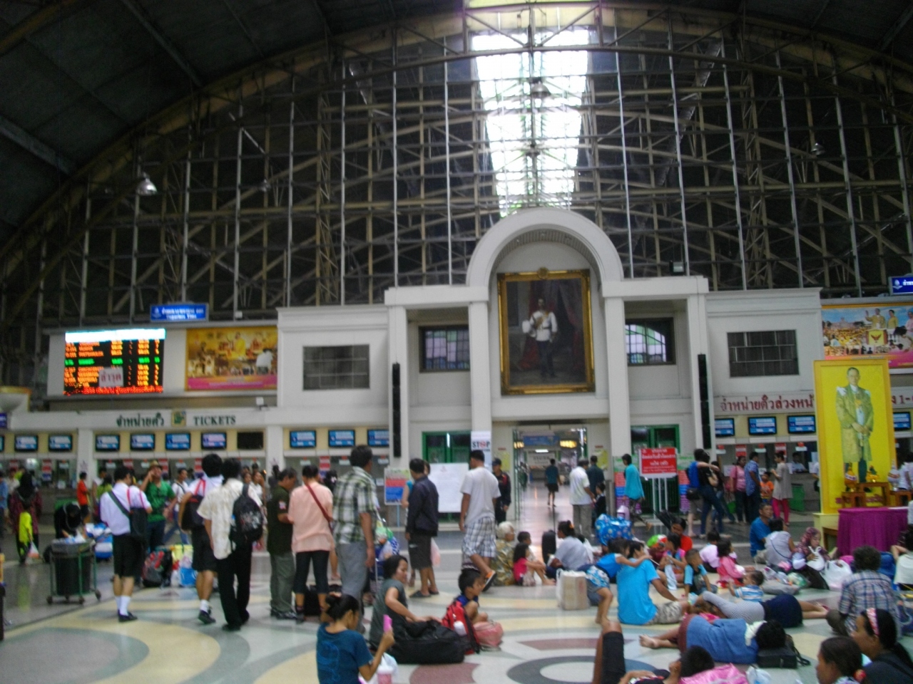 チャイナタウン周辺を見学した後、散歩しながらチャルン・クルン通り方面へ行く途中に寄ってみた。タイ国鉄の駅で、主要幹線4路線の起点駅で地下鉄の駅も横にある。駅舎をかなり大きく、正面からみると、断面が半円形の屋根と、それを支える太い柱が並んでいるデザインがなかなか美しい。中に入ると、正面には列車の発車時刻を表示した大きな電光掲示板が目に入る。その下には、かなりの人が列車を待っている。ホームへは切符がなくても入れ、出発前の列車を見れて、思わず列車に乗り込みたくなった。ここから乗るのが一番楽しいが、そうがれできなくても、特に鉄道が好きな方には訪問することをお勧めする。