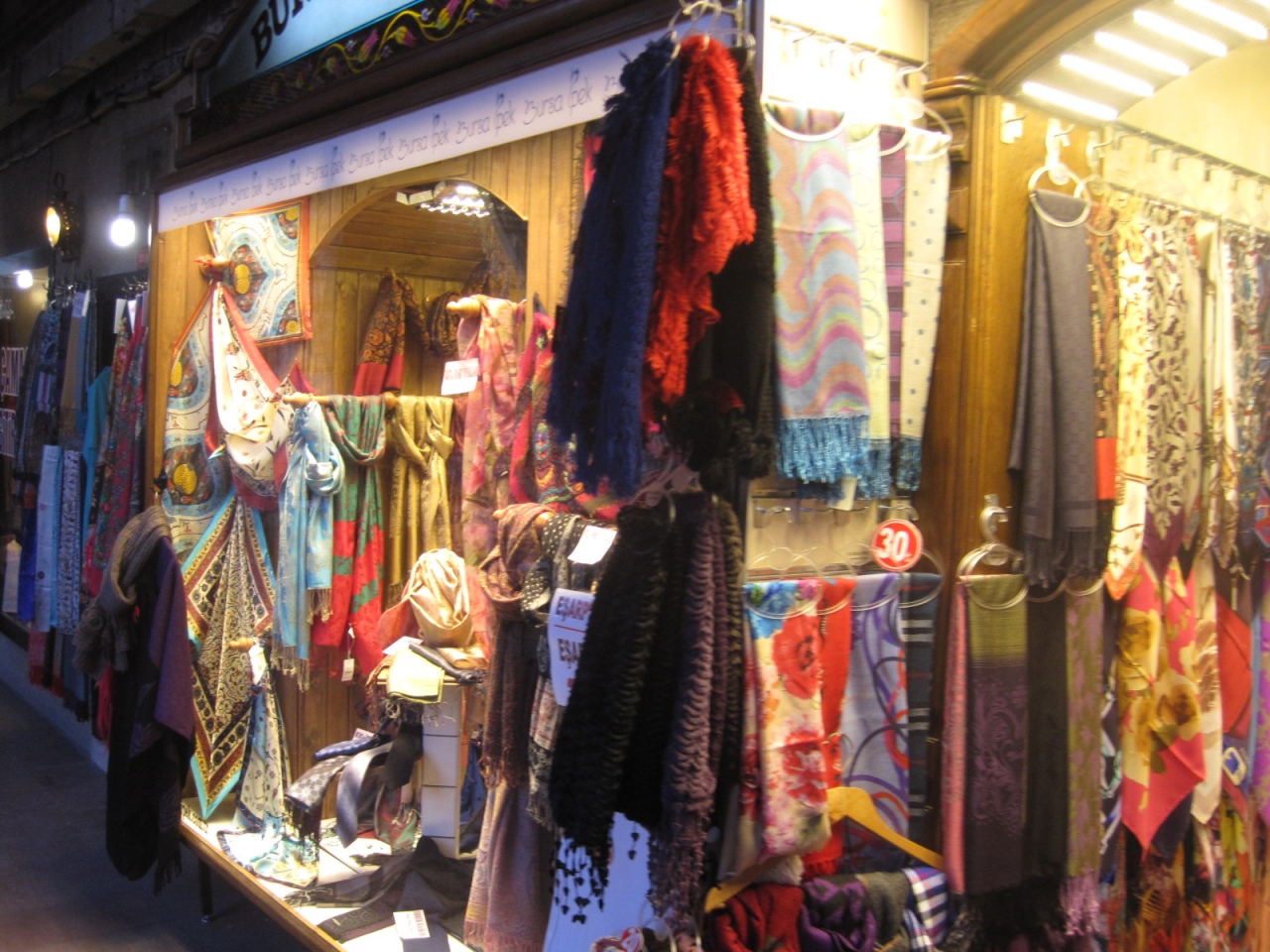 もともとシルク生地の市場なので、建物内にはスカーフの店が多く入っています。