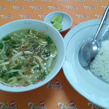 ソトアヤム(チキンスープ)Rp8000とナシRp1000(ソトアヤムとセットの場合のみ)をオーダー。ソトアヤムは見た目はおいしそうでしたが肝心のダシが出ておらず微妙~。ナシのおかわりは単品扱いになるので通常Rp4000ですがRp1000にしてくれました。主人の愛想はよくサービスもよかったのですが味がいまひとつでした。