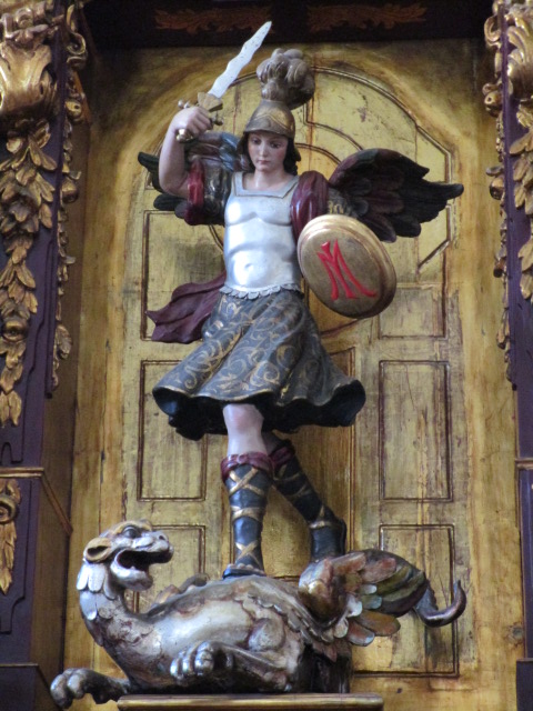本来は、手に天秤を持ち、死者の魂を測り、天国と地獄に分けると言われている。最後の審判にあるように、キリスト様が頭上に君臨し、その下でミカエル大天使が仕事をする日は、果たしていつやってくるのであろうか?