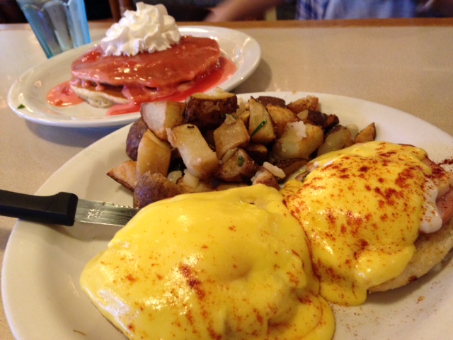 エッグベネフィクトとパンケーキを注文。エッグベネフィクトはかなり濃厚で美味しい~