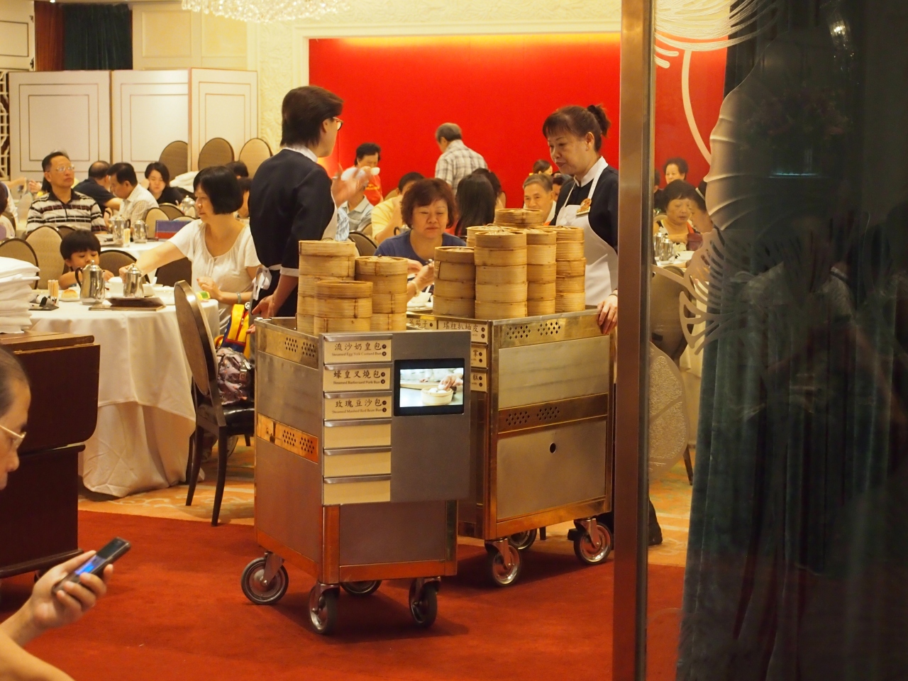 地元の人が沢山いるレストランでした。朝からワゴン式の飲茶が楽しめます。個人の感想ですが、香港旅行中の食事は、どれも日本では嗅いだことのない匂いがしてたんですが、ここの食事は匂いに癖がなく一番美味しく食べることが出来ました。場所は4トラでは新城市広場の中となってますが、新城市広場の外の沙田婚姻登記というところの屋上部分にあります。