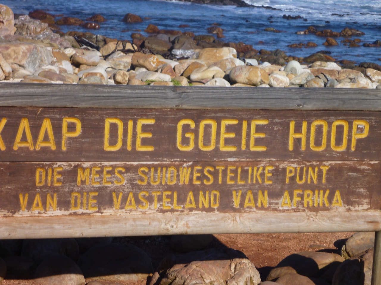 喜望峰の写真スポットには、人込みが。写真を撮るのに、長蛇の列が。写真があって、岬になっている以外は、何もない。この日は海も穏やかで、風もなく、昔の海の難所と言われたゆえんがわからなかった。あこがれ日に到着!