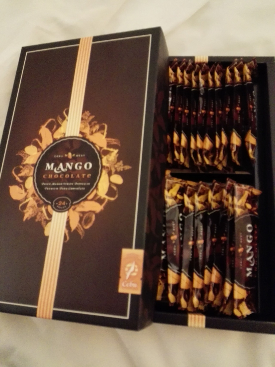 職場の同僚にお土産を買って行く場合、配る手間を考えると、できれば個別包装になっているものがいいのですが、セブのお土産にはなかなか個別に包装されているものがありません。でもいろいろな口コミを見て買ったのが、「セブベストマンゴーチョコレート」というドライマンゴーをチョコレートでコーティングしたお菓子です。