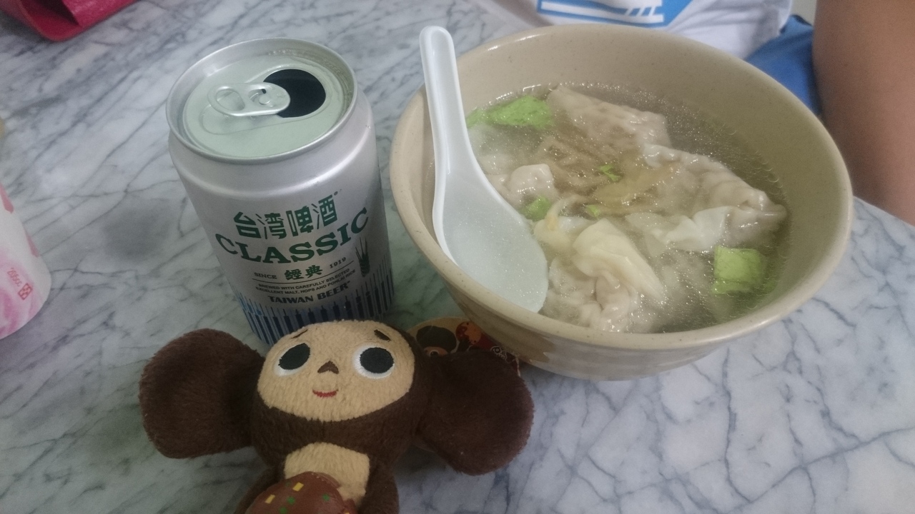 ワンタン湯(60元)&缶ビール(35元)を注文。
