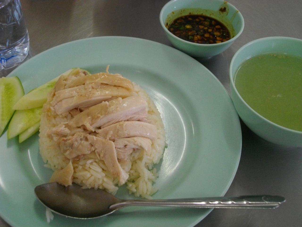 BTSチットロム駅の北側、伊勢丹前の大通りを北上し運河を超えた少し先にある。店頭はガイドブックに紹介されている通り、ピンクのポロシャツを来たスタッフがかなりいた。お客さんが沢山いたが、なんとから空けてもらい座れた。さっそくカオマンガイを注文し食べた。ボリュームは少ないが、鶏肉は柔らかく臭いがほとんどなく、ライスは普通、全体的にはなかなか旨い。夜なら、これをつまみにビールを飲みたい処。アクセスもよく、訪問することをお勧めする。