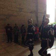 建物の最上階に直立不動の状態の兵隊が2人いる。すさまじい精神力だと感心するが、ずっと眺めていると少しだけ動いたりする。やはりそこは人間だから仕方ない。特に自分が行った時は恐らく新人さんだったらしく、途中から様子がおかしくなってたのがわかってしまった。