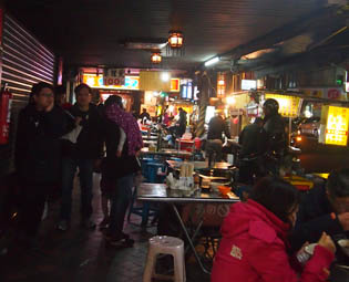 MRTの大橋頭站から地下道を案内板に沿って行くと出口がありそこから夜市が広がります。でも夜市と言うより軽食・夜食の屋台街と言った方が正確ではないでしょうか。食べ物は観光客向けと言うより地元向けのディープなものが多かったです。