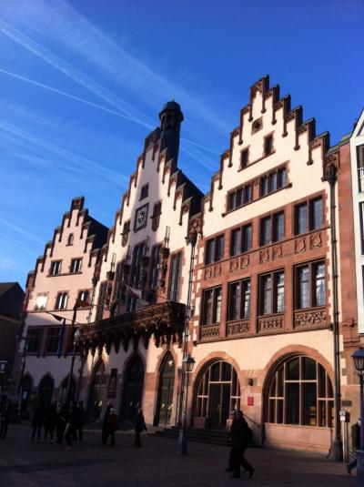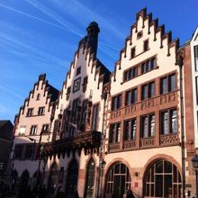 フランクフルト中央駅からトラムで数分なので、アクセスは良いと思います。晴れた日だったので、建物と空のコントラストがとても綺麗でした。レーマー広場の周辺には、飲食店やお土産物を買える店もたくさんありましたよ♪