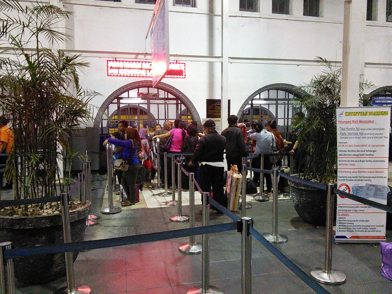 21:45発ジョグジャカルタ行きのBOGOWONTO号に乗るために利用しました。到着は少し早めの8:00頃。で、びっくり。駅舎の前の通路、道路に人があふれていました。シートを引いて横になっている人もいました。ああ、この光景はインドでも見たことあるな。インドネシアもこうなのかと独りごち。別に“インド”が付くからではなく人口が多いからでしょうか。それに利用客の数と施設のキャパが見合ってない。ジャカルタでも有数の大きなターミナル駅なのに待ち合いスペースがほとんどないのですから。おまけに列車ごとに入口が別れていて発車時刻の45分ほど前にならないと駅舎の中には入れません。それに駅舎の中を自由に歩き回れるわけではなくホームまで誘導される感じ。ホームには売店などもありません。指定席で座席が確保されているならあまり早く行くとムダにムダな場所で待たなければならず疲れます。