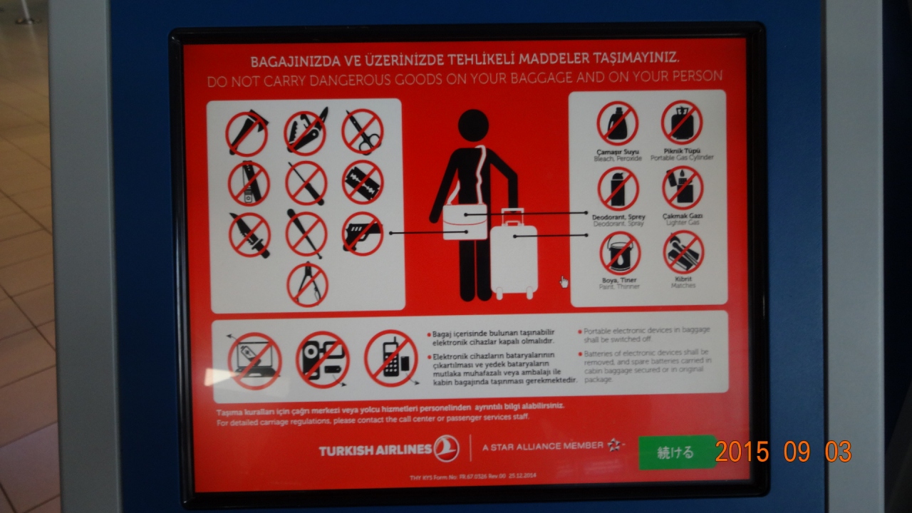 ツアーで早めに空港に着いたため、窓口ではなく、機械でチェックインをしました。